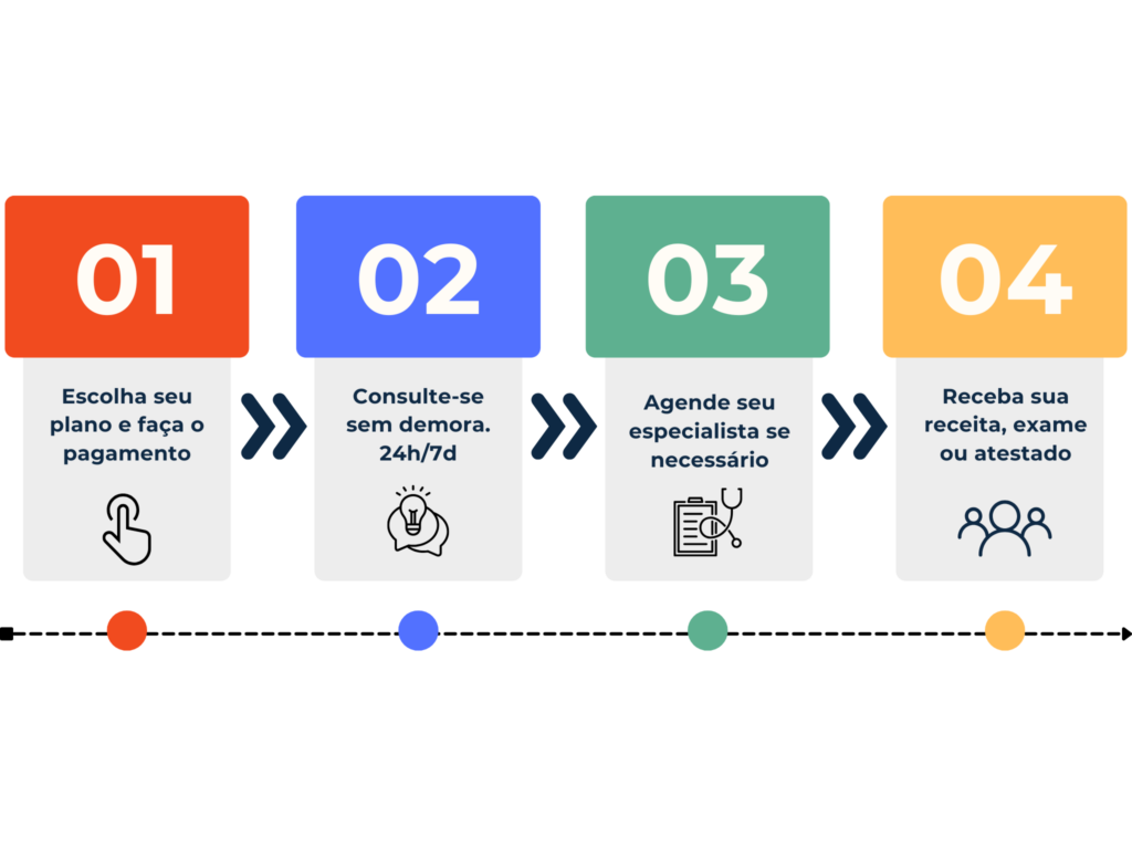 Após escolher o tipo de atendimento desejado, você agenda ou entra em uma consulta imediata com um médico ou especialista. A consulta acontece por videochamada, chat ou telefone, conforme a disponibilidade e a necessidade do paciente.